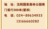 地 址:沈陽國家森林公園南門前行300米(望濱) 電 話:024-89634933 13166660282 024-24821827